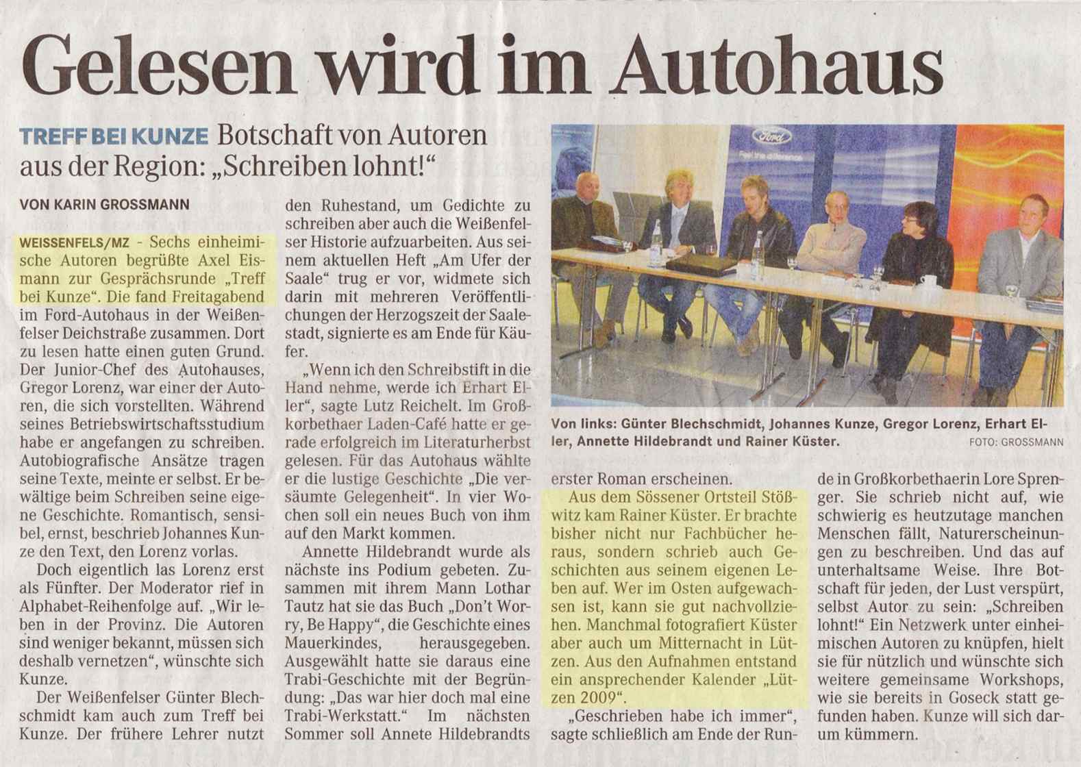 Weißenfelser Zeitung, 25. November 2008 - "Treff bei Kunze" (Autorengespräch)